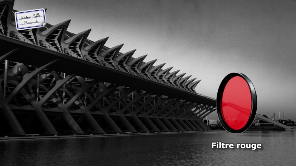 Toujours avec un filtre mais dans une autre logique et pour un autre rendu : si tu photographies en noir en blanc, tu peux ajouter un filtre rouge. En photographie noir et blanc, le filtre rouge sert à renforcer les contrastes. Cela renforcera l’effet « nuit ».