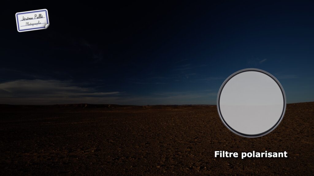 La troisième astuce sera donc d’utiliser un filtre polarisant. En utilisant un filtre polarisant, les contrastes en général et le bleu du ciel en particulier seront renforcés, ce qui donne cet effet un peu comme de nuit.